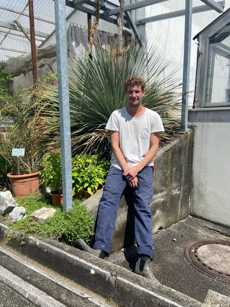 Pflanze: „Leider habe ich keine Ahnung wie diese Pflanze heißt. Deshalb gebe ich ihr jetzt den selbstgewählten Namen scaena ligno – was in etwa soviel bedeutet wie Bühnenbaum. Es verrät schon, warum ich diese Pflanze ausgewählt habe – sie war meine treue Bühnenbegeleiterin während unseres Konzertes am Botanica. Da ich nicht einmal ein Schild für diese Pflanze gefunden habe und beinahe darauf vergessen hätte, stellt sich die Frage: Was kannst du eigentlich? Dies führt wiederum zu meinem Lied aus dem neuen Album Zum Lästerrn – viel Spaß!“ (Jo)