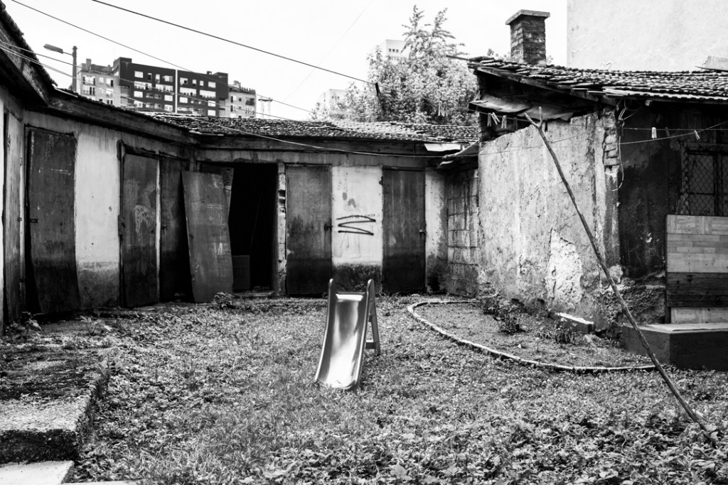 Eine junge Deutsche aus dem sogenannten Herzen Europas begibt sich dorthin, wo der Puls des Lebens ein anderer ist – der Weg der Fotografin Melanie Sapina führte nach Sarajevo. Ihre Fotografien dokumentieren eine Reise auf der Suche nach den Quellen, von denen ihre familiären Wurzeln abhängen. Melanie Sapinas Vater stammte aus Bosnien und lebte in Deutschland. Mit dem Tod des Vaters ging die Anteilnahme der Tochter an seinem Sterben über in ihre Anteilnahme an seinem fremden Leben in der ehemaligen Heimat. Auf den Koordinaten von Vaterland und Muttersprache begegnete Melanie Sapina eine Welt, die sich in der Mitte Europas politisch, wirtschaftlich und kulturell in eine zentrale Randlage gedrängt sieht. Die Psychogeographie dieses Kulturraums ist übervoll an Geschichte, auch an jüngster Geschichte. Die Belagerung Sarajevos während des Jugoslawienkrieges fand 1996 nach beinahe vier Jahren ihr Ende. Krieg und Tod überwindend, erstehen die Stadt und das Land allmählich neu. Die Einschusslöcher an den Fassaden sind heute der äußere Ausdruck innerer Kriegsschauplätze, Traumata und Ängste rühren unmittelbar aus dem Schrecken und aus dessen trauriger Nachhaltigkeit. Weiche Übergänge gibt es nicht, die bosnische Gesellschaft scheint immer noch belagert, sie ist besetzt von Erinnerungen und vom Albtraum regionaler, ethnischer und religiöser Konflikte. Zugleich besteht der Wunsch, von ihren europäischen Nachbarn nicht ausschließlich über den Krieg wahrgenommen zu werden. Dabei ist nicht klar, was an Stelle dieser Wahrnehmung treten soll, denn die Indifferenz staatlichen Handelns ist verantwortlich für fehlende Perspektiven, für Drogenkonsum, für Resignation, für innergesellschaftliche Konflikte.