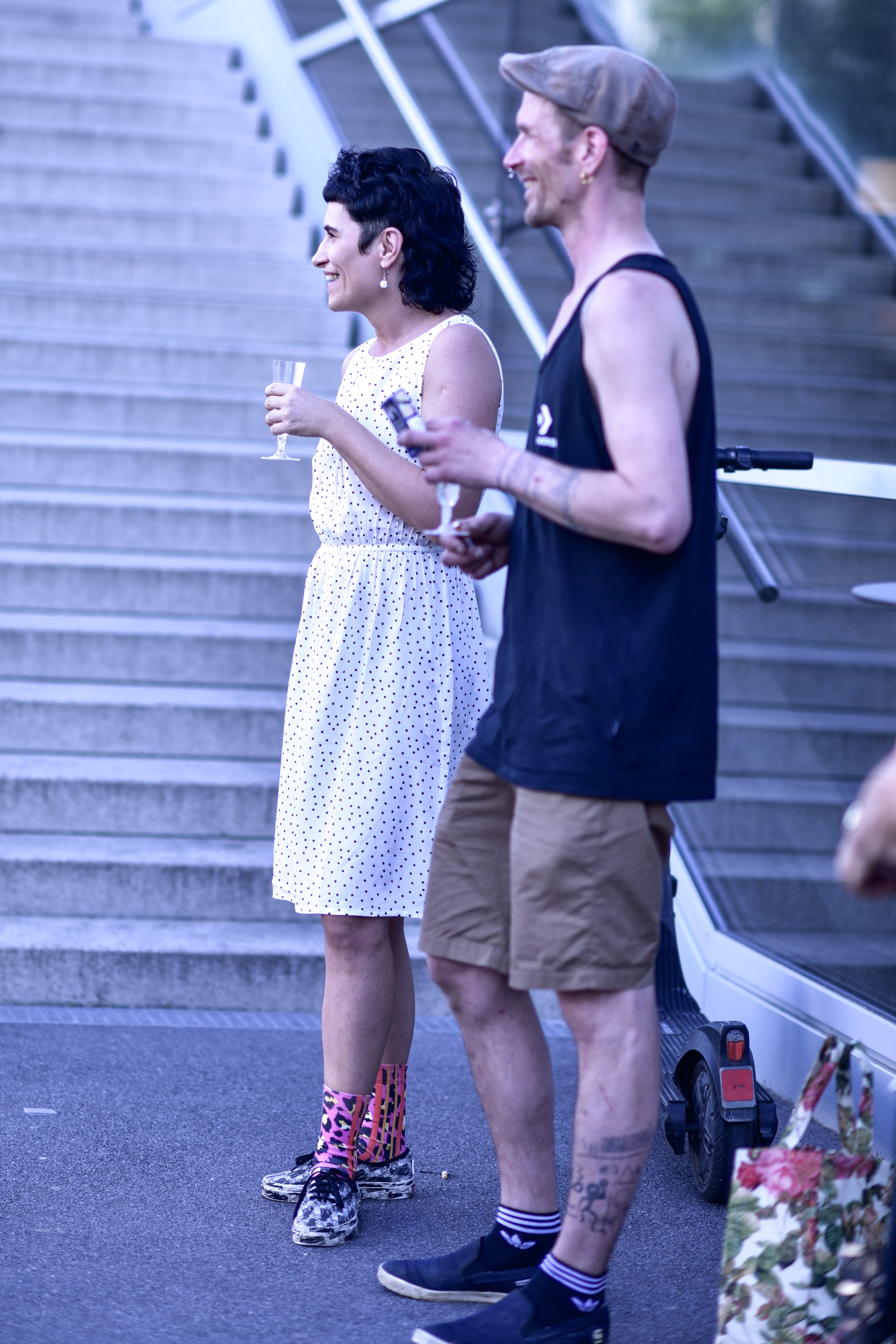 Vergangenen Freitag haben die beiden unter dem Titel „frei.raum,ge(h)stalten. oder digitale wege aus der analogen krise“ ihre erste digitale Ausstellung im öffentlichen Raum Innsbrucks eröffnet. Kunstinteressiertes Publikum war eingeladen, an einem Vernissage-Spaziergang teilzunehmen, bei dem die neun Standorte der Freiluftgalerie gemeinsam erkundet wurden. „Es war uns wichtig, die Ausstellung ein bisschen großräumig auf die Stadt zu verteilen, aber so, dass es etwa als Nachmittagsspaziergang gut machbar ist“. Trotzdem empfehlen die beiden einen Besuch in der Abend-, Morgendämmerung oder bei Nacht, da dann die digitalen Werke am effektvollsten wirken. Ungefähr zweieinhalb Stunden solle man für die Runde einplanen, schätzen die Initiator:innen.