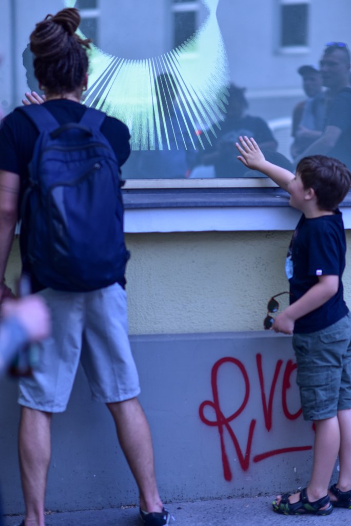 Digitale Kunst muss nicht zwangsläufig nur im digitalen Raum stattfinden, genauso wenig wie sich Kunst im öffentlichen Raum auf analoge Methoden beschränken muss. „Wir wollen die Vorteile beider Welten zusammendenken“, so das Künstlerteam, dessen Idee ausgehend vom pandemiebedingten Lockdown entstanden ist, als sie gespürt hatten, „dass sich die Normalisierung des öffentlichen Lebens nicht so schnell vollziehen wird, und dass gerade auch bildende Künstlerinnen und Künstler durch die Maßnahmen um ihre Einnahmen gebracht wurden – es hat ja keine Möglichkeiten für Ausstellungen gegeben“. Kunst und Kultur wurden hauptsächlich über das Internet konsumiert. „In der Zeit dienten digitale Galerien als eine etwas schwache Substitution für das eigentliche Kunsterlebnis“, so Schrettl, der mit diesem Ausstellungsformat digitaler Kunst dabei helfen möchte, relevanter zu werden: „Diese Form hat auch viele Vorteile, die in herkömmlichen Ausstellungen viel zu wenig zum Einsatz kommen“. Die offene multimediale Galerie solle das aufzeigen und auch Künstler:innen dazu einladen, mit digitalen Formaten zu experimentieren.