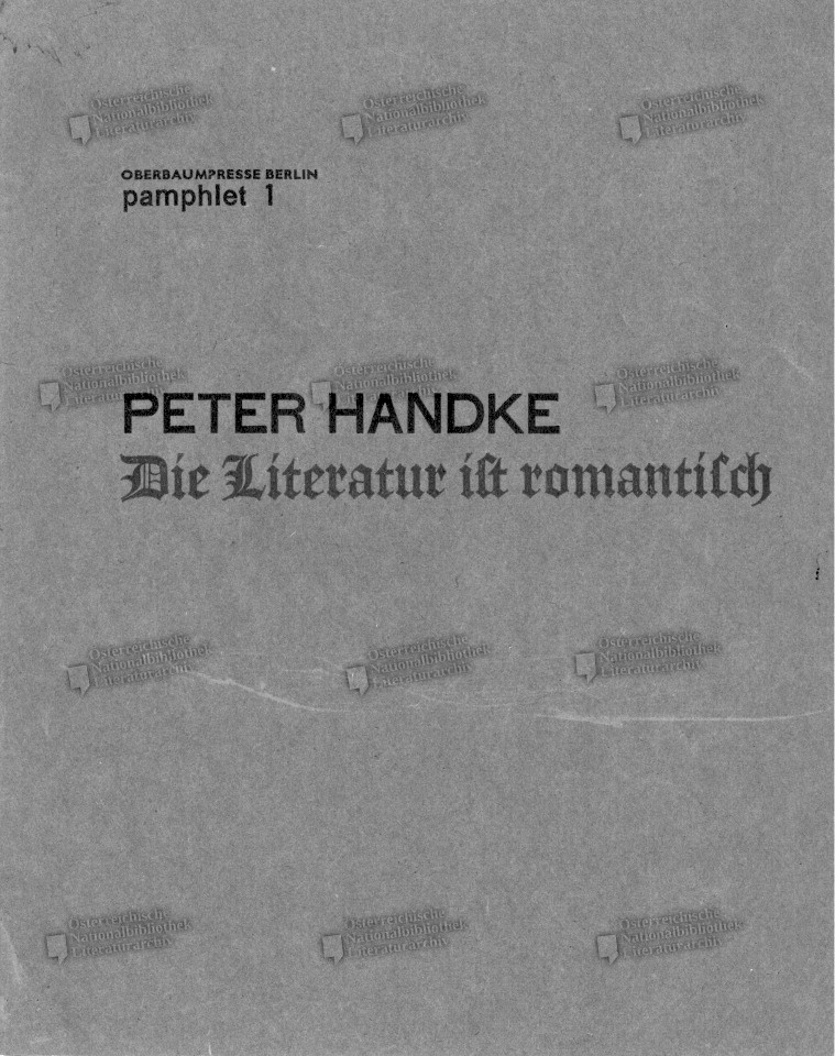 Handke beruft sich demgegenüber, wie Vogt betonte, regelmäßig auf das Motiv einer großen Kunst bzw. einer großen Literatur – einer Literatur, die in der Lage sein soll, als mythische Erzählung einen neuen Vorgriff aufs Heilige zu liefern und der Gemeinschaft eine verlorene Identität zurückzuerstatten. Handkes romantische Poetik möchte demnach aufs Neue die Unterscheidungen von Ästhetischem und Politischem einebnen bzw. die Kluft verhüllen, „die das Ästhetische vom Politischen trennt“, so Vogt.