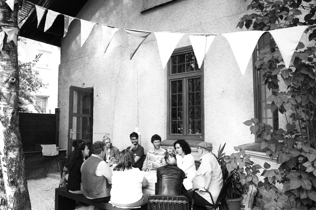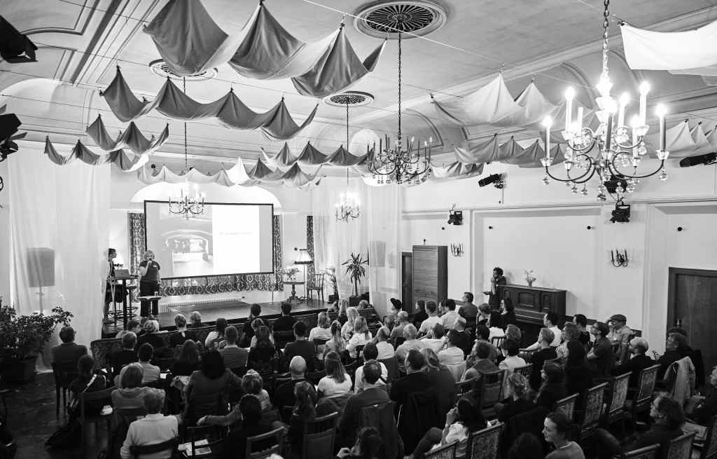 Wer am Freitag durch die gläsernen Flügeltüren den ehemaligen Tanzsaal des Gasthofs Neuwirt in Wattens betrat, konnte gar nicht anders, als sich von den Biedermeiersesseln, Brokatvorhängen, schummrigen Lustern und der Versammlung der kreativen Köpfe geradezu augenblicklich inspirieren zu lassen. Der Schauplatz ist nicht zufällig gewählt, kann der Gasthof Neuwirt doch ebenfalls auf eine lange Geschichte als kultureller Treffpunkt für Leute aus der Region zurückblicken – zu dem er nach jahrzehntelangem Stillstand auf Initiative des Kulturvereins Grammophon und in Zusammenarbeit mit den Wirtshausbetreiber:innen wieder aufgebaut wird. Alexander Erler, Obmann des Vereins, beschreibt eingangs, wie in dem traditionsreichen Gasthaus in den letzten Jahren ein zeitgemäßes Kultur- und Gemeinschaftshaus entstand und wie dieses weiterhin ausgebaut werden soll – mit dem Fokus auf „guter Gastfreundschaft“, worunter Erler eine gemeinsame Arbeitsweise, Nachhaltigkeit, Gemeinwohl und zivilgesellschaftliches Engagement versteht. Überhaupt ist Grammophon ein Vorbild in Sachen engagierter und vielfältiger Kulturarbeit auf dem Land: Der Verein und seine inzwischen 170 Mitglieder haben seit der Gründung 2009 über 200 Veranstaltungen organisiert und mit dem österreichweit bekannten Wiesenrock einen Wegbereiter für nachhaltige Festivalorganisation auf die Beine gestellt.