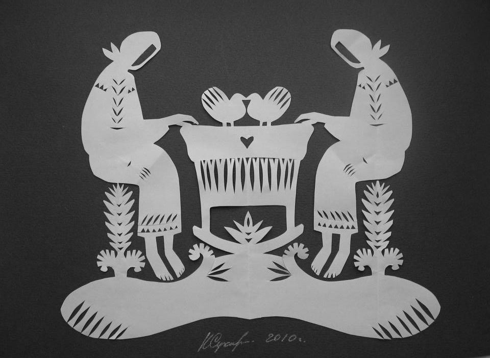 Auch weil der Paper-Cuts destruktiv sein können – das Schneiden wirkt in diesem Zusammenhang zerstörerisch als auch befreiend – sind sie als Mittel des Widerstands geeignet. Der Akt des Schneidens an sich ist ja bereits eine Subversion, man schneidet sich quasi die Last vom Leibe. Warme, romantisierende Erinnerungen verweben sich hier mit individuellen Erfahrungen und Traumata. Der Scherenschnitt hilft demnach als körperlicher Akt, darüber wegzukommen, aber auch, sich auf Herzerwärmendes zu besinnen. Nicht zuletzt birgt der Scherenschnitt immer auch ein überraschendes Moment in sich, da in der Produktion das Endresultat nicht gesehen und oftmals nur bedingt gesteuert werden kann. Die Papierkünstler:innen Romashko, Baburyna & Co sehen ihn als Chance, einander gesellschaftlich näher zu kommen: Traditionen aus West- und Osteuropa werden mitunter verbunden, um auf Basis des gemeinsamen Nenners, des gemeinsamen Erbes, sowie des kollektiven Schaffens eine Plattform empathischer Annäherung zu ermöglichen: