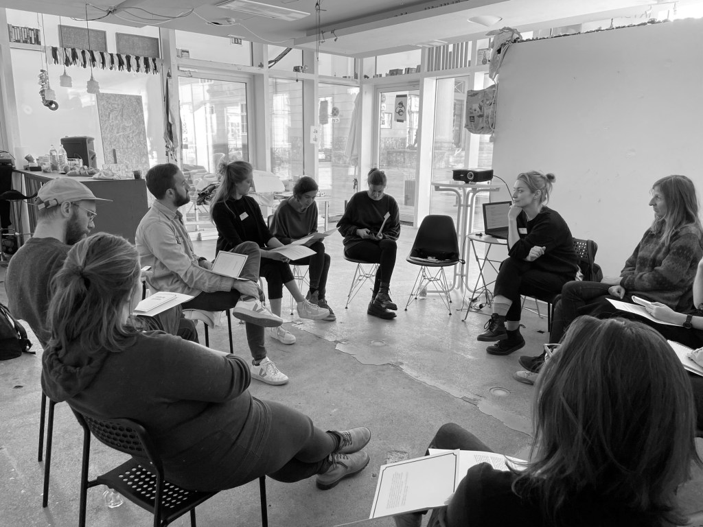 Die Nachrufe und Liebesbriefe der Lehrgangsteilnehmerinnen wurden anschließend von Stephanie Rauscher und Poetry-Slammerin Katrin ohne H vorgelesen, die selbst am letzten Modul teilgenommen und Texte dazu verfasst hat. Im Zuge der Themen des Treffpunkts Klimakultur tauschten sich Moderator Johannes Reisigl, der ebenfalls zum Kernteam Klimakultur zählt, Alexandra Fruhstorfer und Katrin ohne H über nachhaltige Kulturarbeit, Krisenstrategien und Mobilität aus. Zum Abschluss der Veranstaltung erfolgten noch ein gemütliches Beisammensitzen, Diskutieren und intensive Gespräche. Ein gelungener Abschluss zu einem äußerst vielfältigen und informativen Lehrgang. Ein herzliches Dankeschön an die Organisator:innen, Speaker:innen und Teilnehmer:innen für das hochspannende Programm und die tolle Zusammenarbeit!