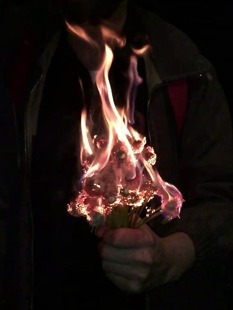 Somit wärst du ein zweidimensionaler Raum, ein Bild, das von dem Fremden interpretiert werden würde. Und du, als das Bild, hast bereits alles gesagt, indem du an ihn die Waffe weitergibst. Der Fremde würde vielleicht wüst seine Gedanken, Emotionen ordnen, weinen, zittern, schwitzen – nicht zögern. Drohe er sich selbst mit Konsequenzen? Überredet er sich selbst? Beides gleichzeitig? Sei alles nur ein Traum? Fiebrige Horrorshow?