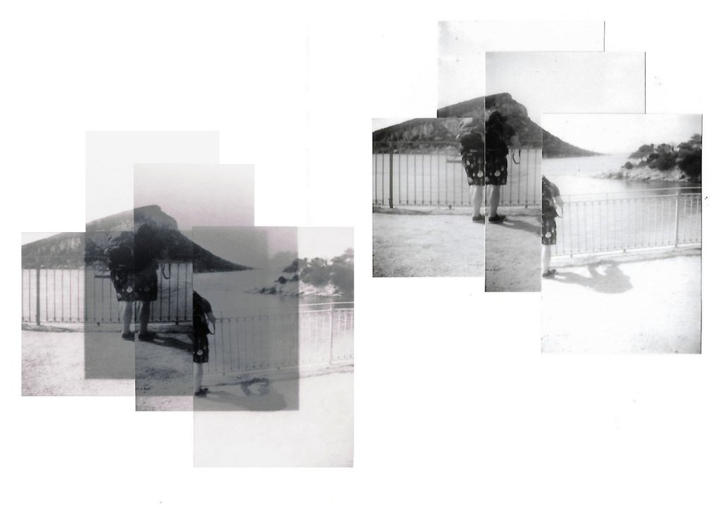 Die beiden Werke haben denselben Schaffensprozess. Sie stammen aus einer alten ukrainischen Agat 18k, deren Besonderheit es ist, auf „Half-Frame“ zu fotografieren. Das heißt, es passen 72 statt der 36 Fotografien auf einen Kleinformat Film. Diese Einzelfotos wurden gescannt und digital zu einem Panorama zusammengefasst, dann ausgedruckt, per Hand geschnitten und zur Collage geklebt.