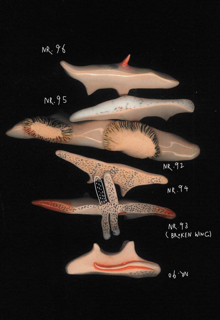 Es gibt „Verwandtschaftverhältnisse“ innerhalb der Companions — oft schauen die, die am gleichen Tag geformt wurden, sich ähnlich, haben alle Zacken, oder viele davon haben Flügel. Es geht um die Erforschung von Form an sich, und um die Erforschung eben dieses „Zusammengehörens“ — wie unterschiedlich dürfen sie sein? Was hält sie zusammen?