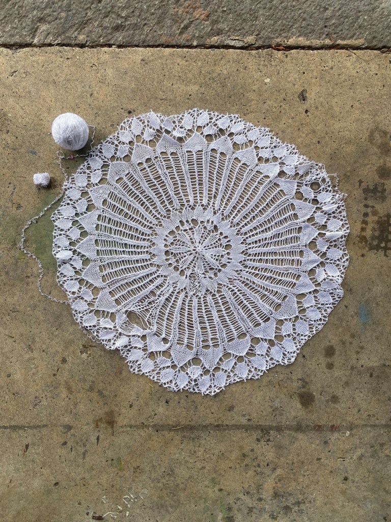 Ich treffe mich mit Michelle Schmollgruber, um über ihre künstlerische Arbeit zu sprechen. „Zuerst möchte ich dir etwas zeigen“, sagt sie, holt eine Schachtel aus ihrem Rucksack und öffnet sie vorsichtig. Nochmals in Papier gehüllt, scheinen bereits bunte Fäden hervor. Ganz ausgepackt wirkt das Objekt wie ein quallenartiges Wesen – aus unterschiedlichen Fasern und Farben, manche länger, manche kürzer, manche geordnet, manche tanzen aus der Reihe. Es hat etwas Anziehendes an sich, eine weiche, fluffige Gestalt, in die man am liebsten gleich hineingreifen möchte. Auf der Rückseite offenbart die Knüpftechnik ein pixelartiges Raster, fast wie ein eingeschriebener Code. Es scheint, als würde eine verschlüsselte Geschichte dahinter liegen – und tatsächlich sind es mehrere Geschichten, wie die Künstlerin gleich erklärt.
