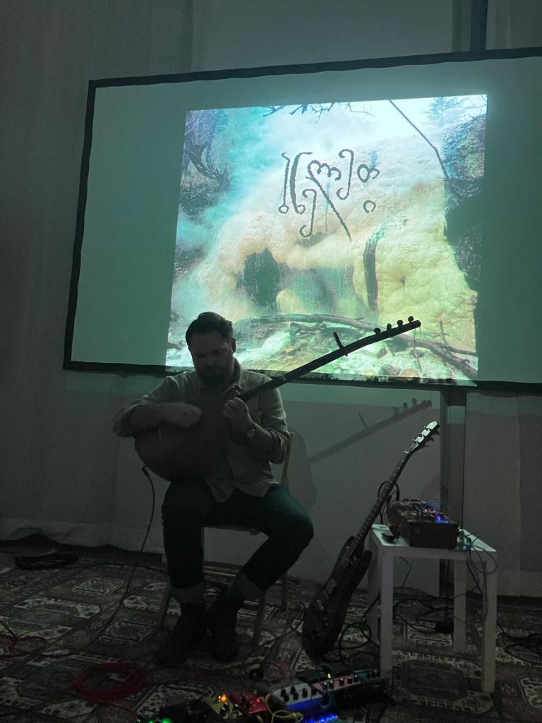 In his music, Ben combines Georgian polyphony with elements from Azerbaijani guitar traditions and darker sounds from experimental and underground scenes in the US, where he grew up. Bneleti — a term in archaic Georgian referring to a mythical “Land of Darkness” — brings these influences together in an experimental electronic composition with elements of hardcore and black metal. During the live performance, he switched between instruments like guitar, saz and modular synthesizers. As listeners, we found ourselves in meditative soundscapes that carried us into a trance-like state.